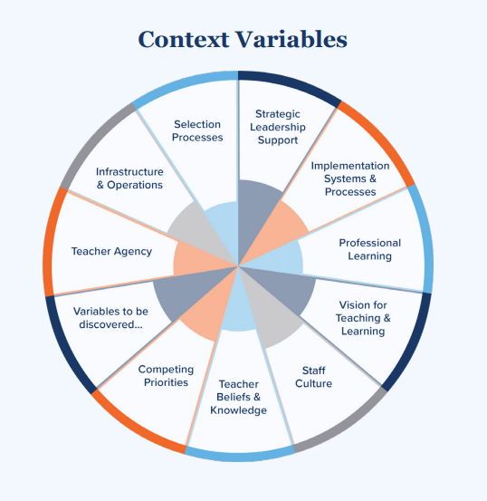 El EdTech Genome Project desarrolló 10 variables consecuentes que describen los contextos escolares que influyen en el desempeño de la tecnología educativa, además produjo dos herramientas, el marco de implementación de EdTech y el inventario de implementación EdTech para definir, detectar y medir las variables.
